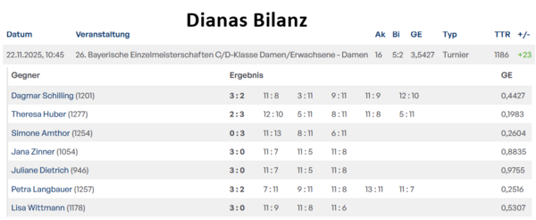 Bayerische Vizemeisterin - Diana qualifiziert sich für die TT-Finals