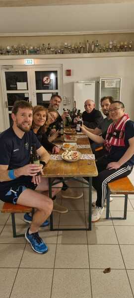 Gestern hat uns Erwin eingeladen, mit ihm seinen 85. Geburtstag zu feiern. Dazu brachter er nach dem Training alkoholfreies Bier und Softdrinks und eine Auswahls an Canapés. Und so saßen wir mit ihm im Vorraum der Halle gemütlich beisammen.